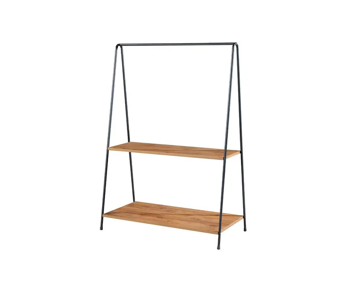 В наличииФункциональная вешалка с двумя полками — отличное решение для хранения одежды, обуви и аксессуаров. Подходит для прихожей, спальни или гардеробной. Продукция поставляется в разобранном виде и требует сборки.
